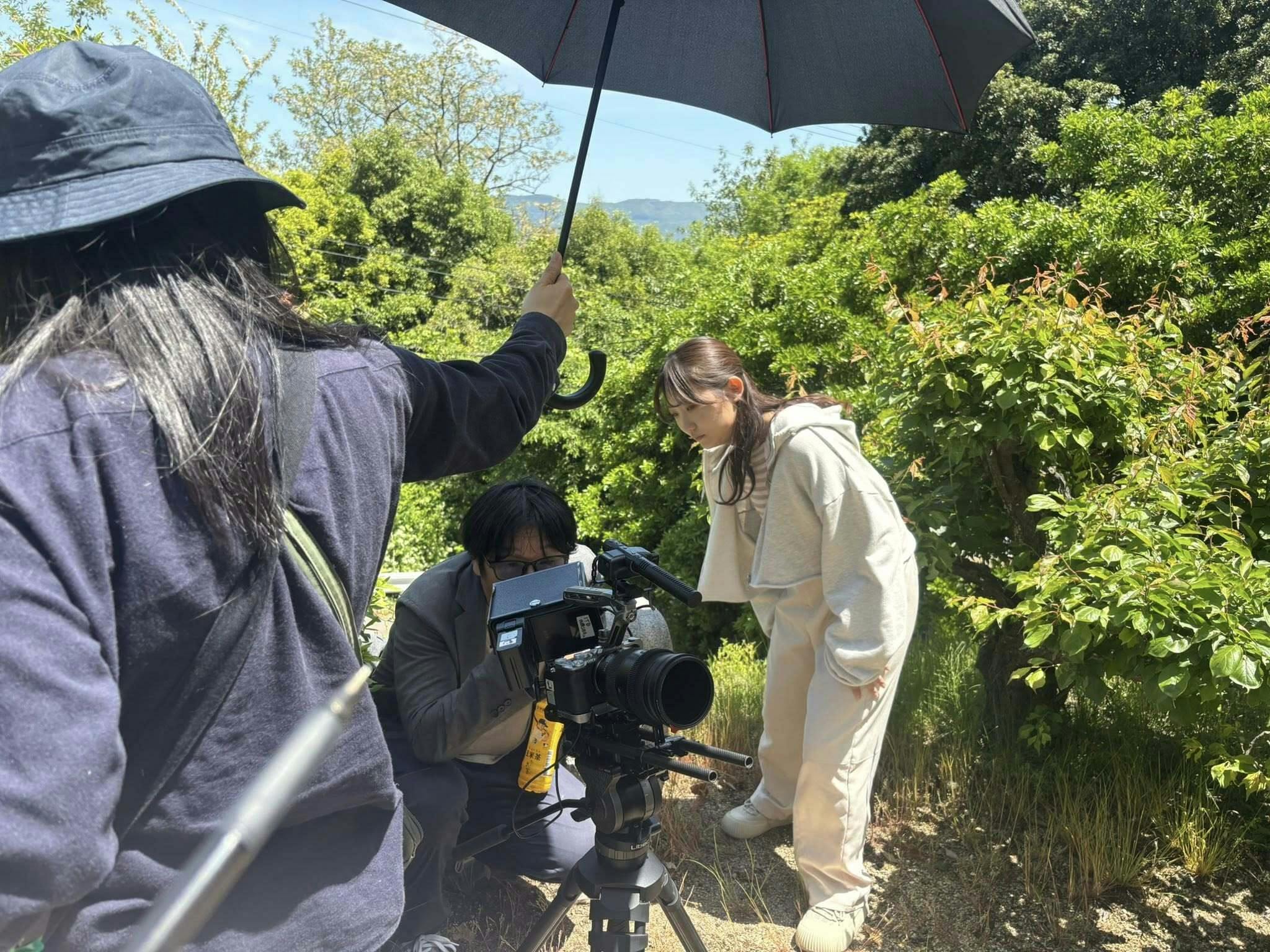 主演の夏川愛実さん、監督の石田、プロデューサーの沼田がインタビューを受けました。